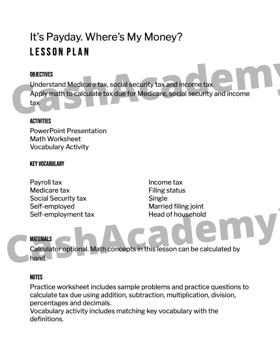 Quiz & Worksheet - How to Calculate Property Taxes | Study.com Print Worksheet 1. A house has an assessed value of $250,000. The local government has a tax rate of $75 per $1,000 for calculating the property tax. What is the property tax? $20,000 $18,750... › library › learningEveryday Math Skills Workbooks series - Money Math - CDÉACF invisible. But math is present in our world all the time – in the workplace, in our homes, and in our personal lives. You are using math every time you go to the bank, buy something on sale, calculate your wages, calculate GST or a tip. Money Math is one workbook of the Everyday Math Skills series. The other workbooks are: • Kitchen Math Income Tax worksheet - Liveworksheets.com Income Tax Calculating income tax and money received after deductions. ID: 1342388 Language: English School subject: Math Grade/level: Secondary ... More Math interactive worksheets. Matching Number Name to Numbers (1-10) by khosang: Addition DJ by CPSGradeOne: Place Value by Gierszewski: Mixed Times Table › geometry › quadrilateralsTrapezoid Bases, Legs, Angles and Area, The Rules and Formulas A trapezoid is a quadrilateral with one pair of parallel lines. Bases - The two parallel lines are called the bases.. The Legs - The two non parallel lines are the legs.